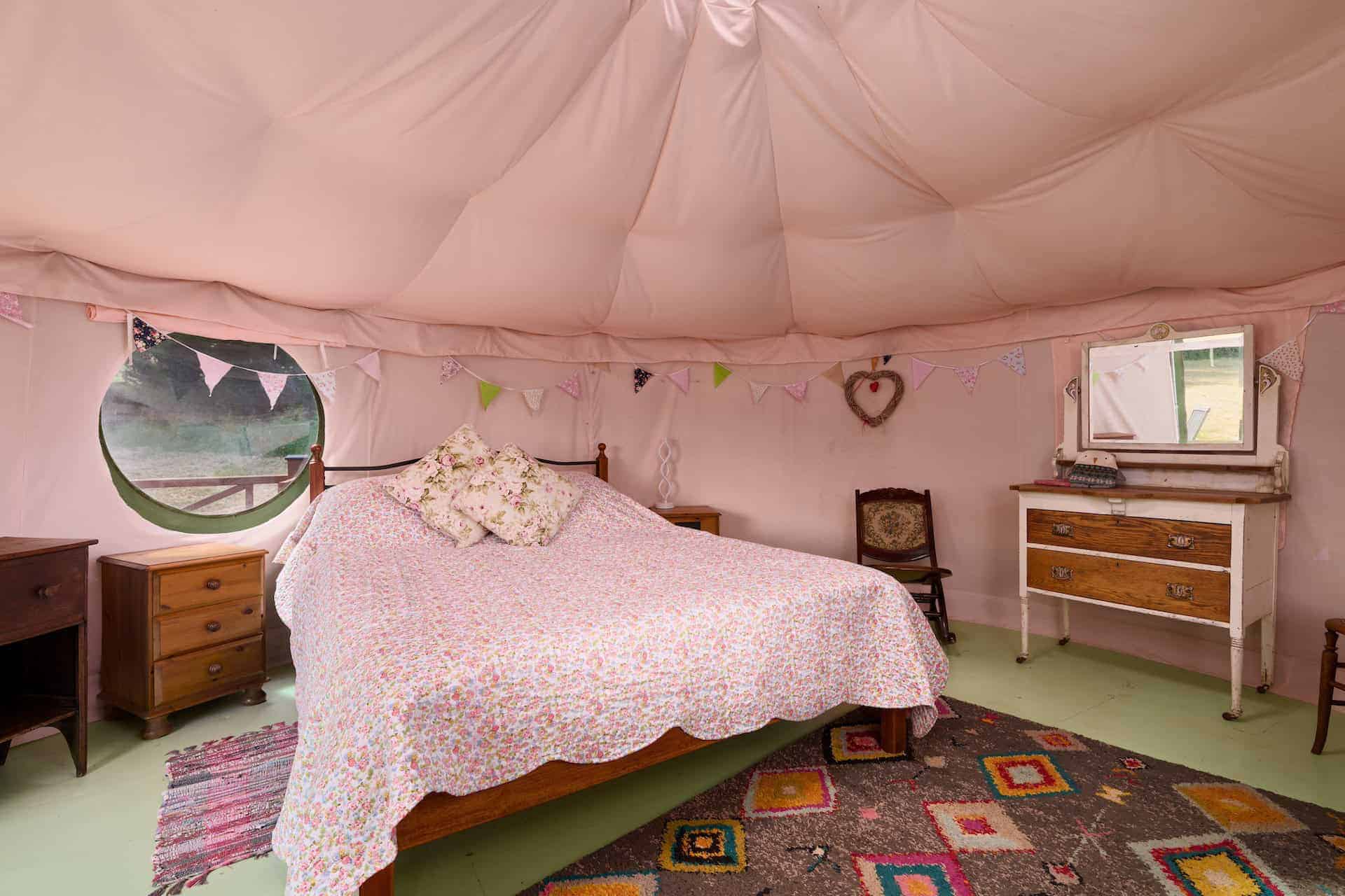 Discover the allure of Heartsease, the luxurious glamping yurt at Allercombe Farm. Nestled in the picturesque South Hams, a splendid region between Dartmoor, Torbay, and the sea, this glamping experience invites you to immerse yourself in the heart of rural and coastal landscapes. Allercombe Farm Glamping is situated on a family-run farm spanning over 50 green acres, offering a delightful escape.